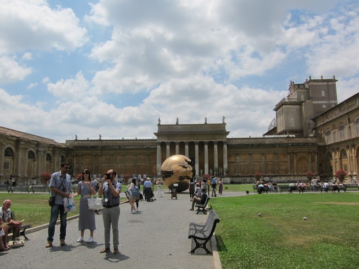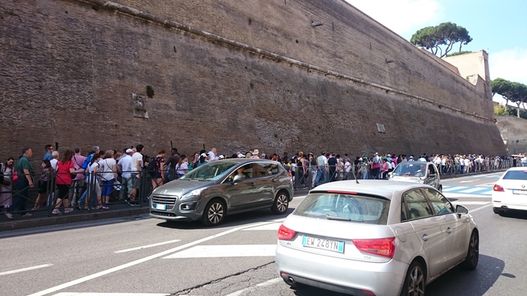 ตื่นมาทำไมไม่รู้ตอนตีสี่ กว่าจะหลับได้อีกก็เกือบหกโมงเช้า ตื่นอีกทีก็แปดโมงเช้าอาบน้ำแต่งตัว ลงมากินอาหารเช้า ซึ่งก็มีขนมปัง นม น้ำส้ม กาแฟ ไม่ได้มีอะไรให้เลือกเยอะ ก็กินๆไปให้อิ่ม อย่าบ่นมากกินเสร็จก็ออกมาที่สถานี trimini เพื่อนั่ง metro เพื่อไป Vatican ผมซื้อตั๋ว 1 day pass ครับ ในรถคนแน่นมาก ระวังกระเป๋าด้วย พอถึงสถานี ottaviano ผู้โดยสารส่วนใหญ่ก็พร้อมใจกันเดินออกจากขบวนรถ ก็เลยไม่ต้องใช้แผนที่ เพราะเดินตามๆกันไป ก็ถึงที่หมาย พอถึงทางเข้าเห็นคิวยาวเหยียดเพื่อซื้อตั๋วเข้าชม ผมเตรียมตัวมาดี ซื้อตั๋วล่วงหน้าทางอินเตอร์เน็ต พิมพ์ออกมาแล้วก็เข้าอีกทางเพื่อไปแลกตั๋วจริงที่เคาน์เตอร์ ประหยัดเวลาไปเยอะมาก