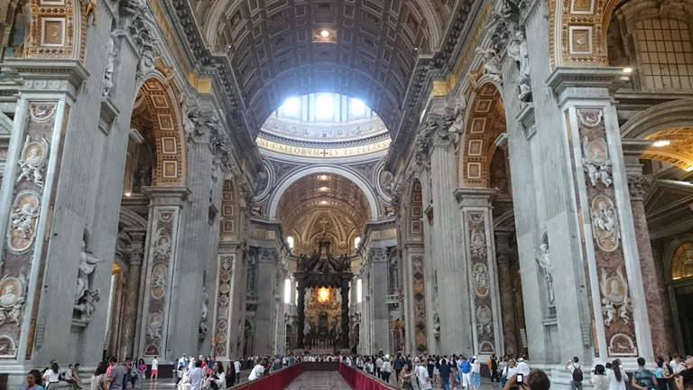 พอหนำใจกะ Vatican museum ก็ออกมาที่ โบสถ์ St. Peter's Basilica ที่ยิ่งใหญ่ แถวเข้ายาวมาก แต่ก็ใช้เวลามานาน เพราะ แค่ตรวจกระเป๋าไม่ต้องซื้อตั๋ว พอเข้า ข้างในไม่ผิดหวังเลยครับ สวยงามมาก