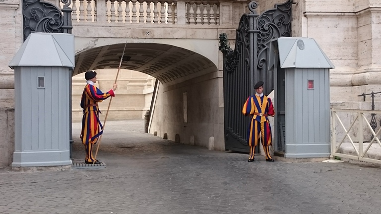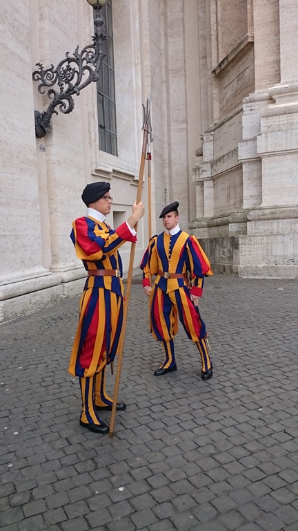 ออกมาจากโบสถ์ ก็โชคดีได้เห็นการเปลี่ยนกะของ Swiss guard พอดีเลย เห็นพูดอะไรกันด้วย อยากรู้ ใครรู้ช่วยมาบอกด้วยนะครับ