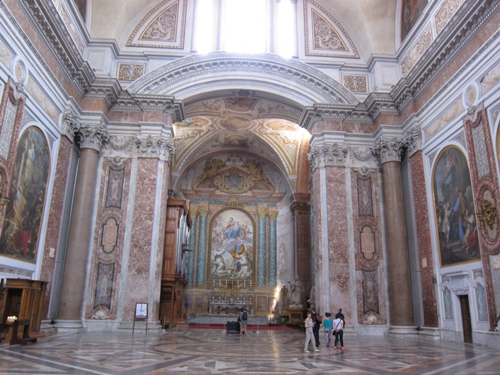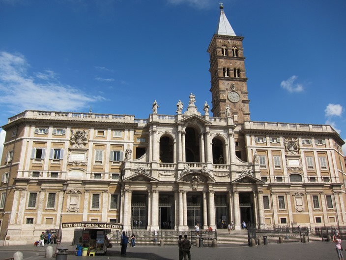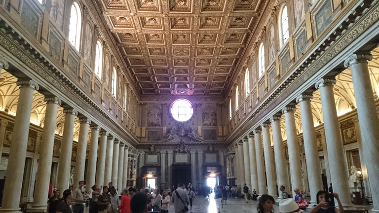 นอนหลับไปตอตไหนก็ไม่รู้ ตื่นมาอีกทีก็หกโมงเช้า สงสัยเป็นเพราะความเหนื่อยจากการเดิน ลุกขึ้นอาบน้ำแต่งตัวจัดกระเป๋า กินอาหารเช้า เช็คเอ้าท์ ฝากกระเป๋าไว้ที่โรงแรม แล้วก็เดินออกมาที่โบสถ์ Santa Maria Maggiore ที่นอนมองหลังคามาสองคืน ผมชอบเพดานโบสถ์ซึ่งเป็นไม้แกะสลัก ต่างจากทั่วไปที่จะเป็นภาพเขียนสี