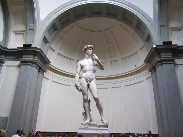 พอเก็บกระเป๋าเสร็จก็ออกเดินตรงไปสู่ Galleria dell’Accademia ซึ่งเป็นที่พำนักของเทพบุตรรูปงามนามว่า david ใช้เวลาเดินไม่กี่นาทีก็ถึง คิวซื้อตั๋วไม่ยาวนัก ที่นี่ผมไม่ได้ซื้อตั๋วล่วงหน้าไว้ก่อน ก็เลยต้องต่อคิวยาว แต่เนื่องจาก จำกัดจำนวนนักท่องเที่ยว ไม่ให้ไปแออัดข้างใน จึงทำให้แถวเคลื่อนที่ค่อนข้างช้า ใช้เวลาต่อคิวเกือบชั่วโมงก็ได้เข้าไปซักที highlight ของที่นี่ก็คือรูปปั้น David ซึ่งเป็นผลงานของ Michelangelo คนส่วนใหญ่ก็เลยจะไปออกันรอบๆ ต้องพยายามหามุมถ่ายรูปสวยๆ กดชัตเตอร์ไปหลายสิบเลยครับ