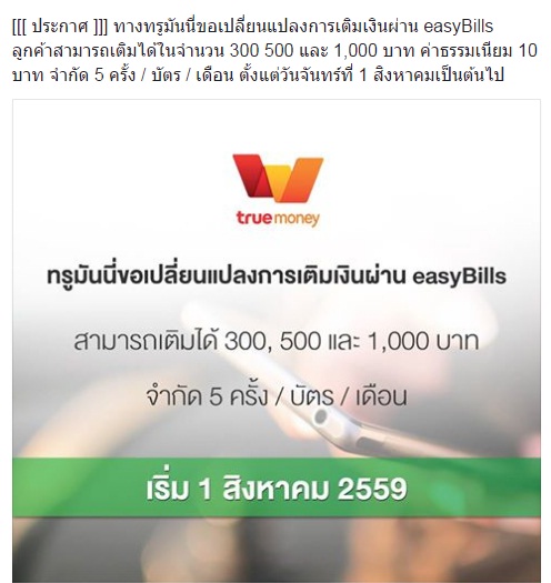 พอดีอยากจะได้เงินสดมาหมุนด่วน เท่าที่นึกได้ตอนนี้คือ - มีบัตร mastercard อยู่ - ใช้บริการ easybill เติมเงินเข้า true wallet - โอนจาก true wallet เข้าบัญชีธนาคารอีกทีผ่าน promptpay แต่ปัญหาคือ ที่ eas