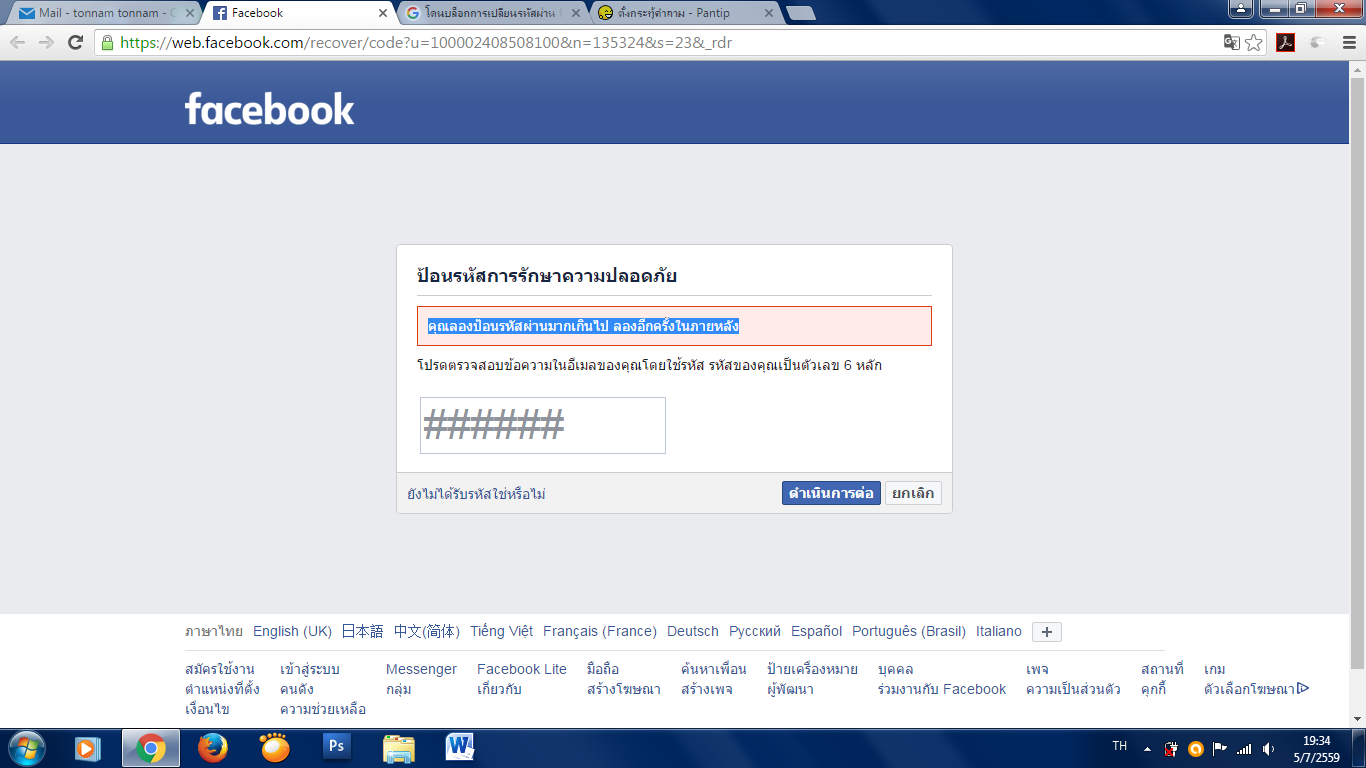 FACEBOOK เปลี่ยนรหัสผ่านบ่อยเกิน แล้วมันไม่ยอมให้เปลี่ยนอีก แก้ยังไงค่ะ