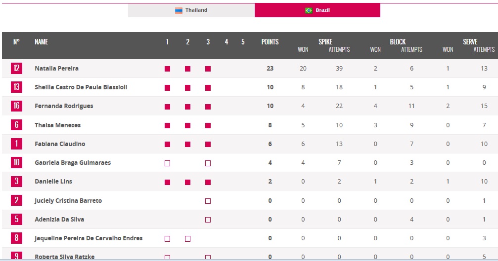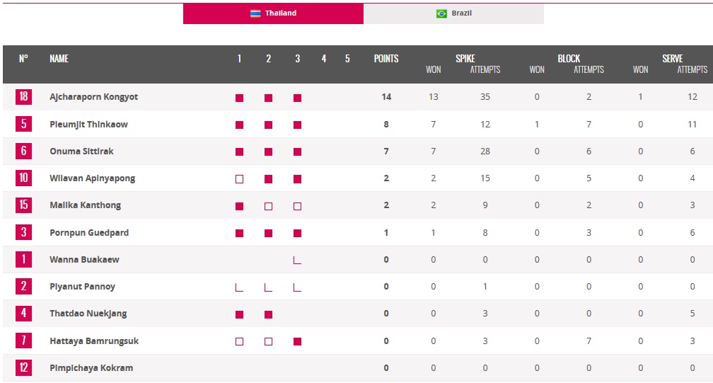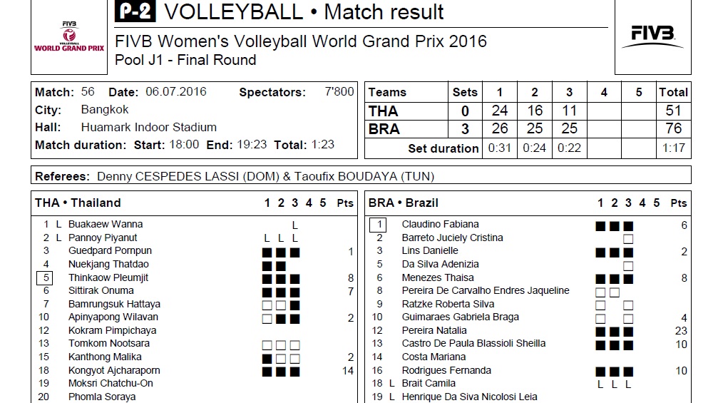 [สถิติ] worldgrandprix 2016 ไทย VS บราซิล รอบfinal