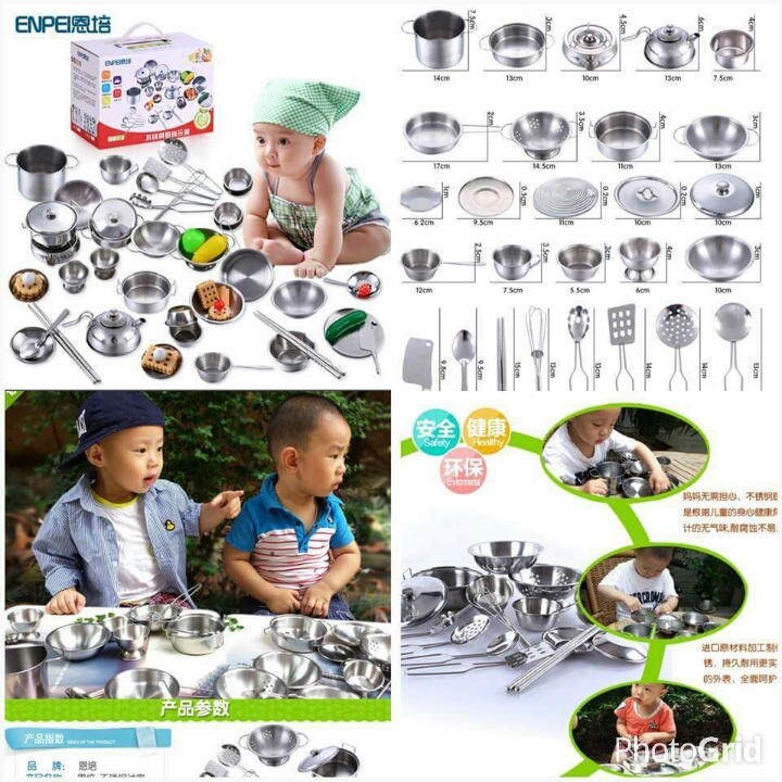 ของเล่นเสริมพัฒนาการเครื่องครัวสแตนเลส ให้น้องได้เล่นขายของได้อย่างสมจริง เสริมสร้างจิตนาการและความคิดสร้างสรรค์ ผลิตจากสแตนเลสเนื้อดีลบคม
