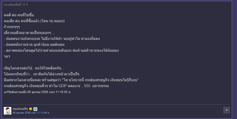 ขณะที่รัฐมนตรีอุตสาหกรรม เชื่อว่า ปรากฎการณ์ที่เกิดขึ้น ส่วนหนึ่งเป็นผลพวงมาจากนโยบายรถคันแรก