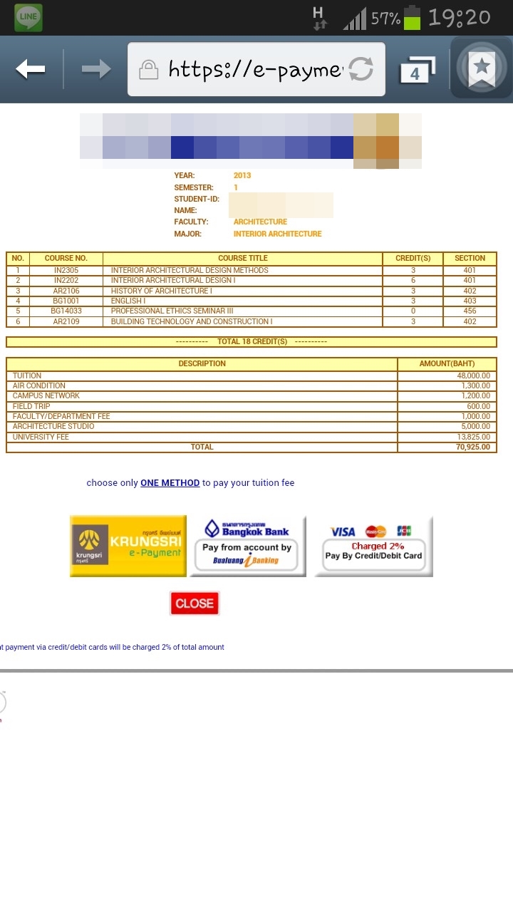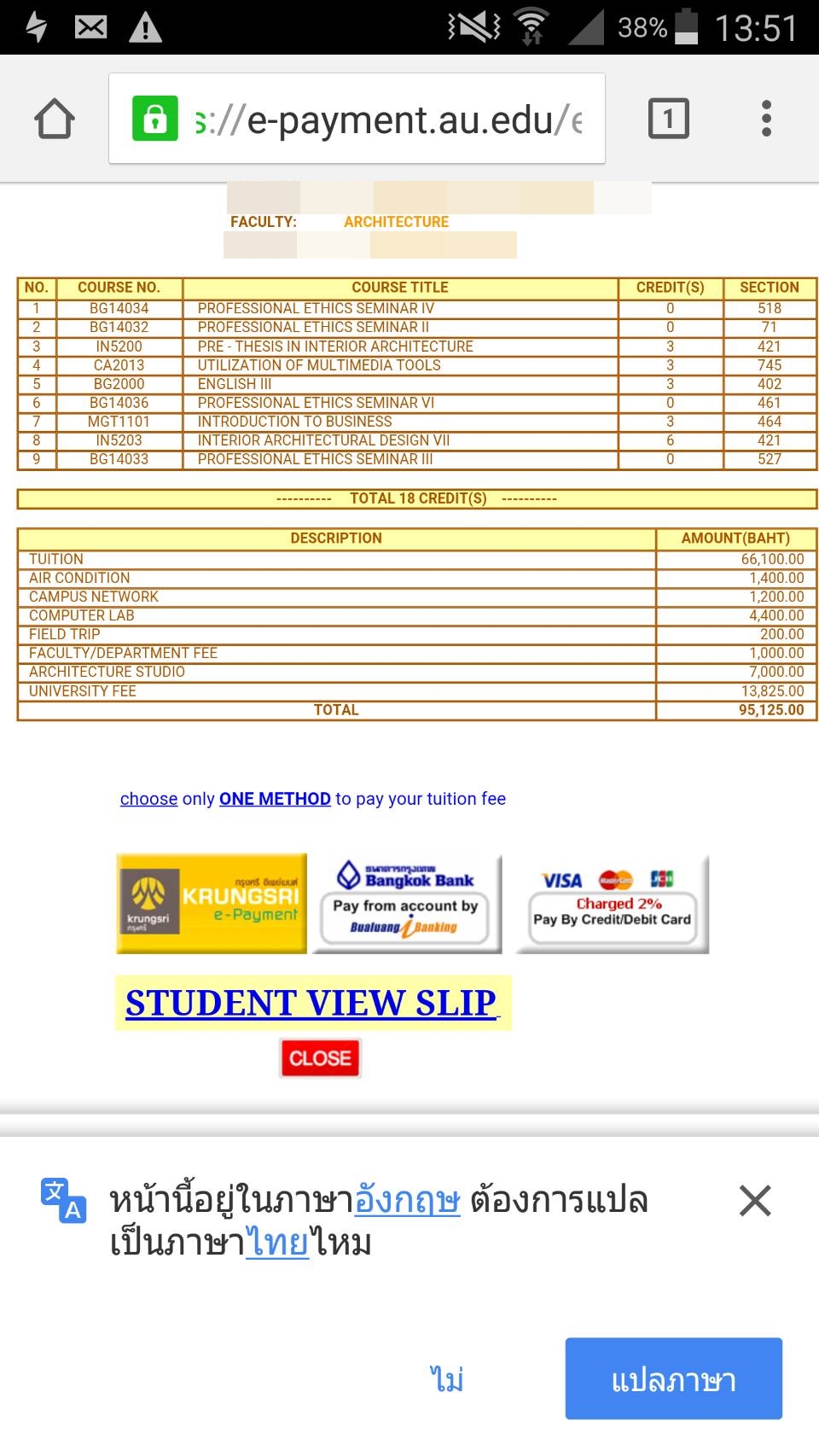 ซึ่งเมื่อวานนี้ก็เป็นวันแรกที่ได้ทราบค่าเทอม ทั้งที่มหาลัยความจะแจ้งล่วงหน้าก่อนวันจ่าย แต่ไม่เป็นไรค่ะ ช่วงPayment มีถึงวันที่13 เราก็โอเค