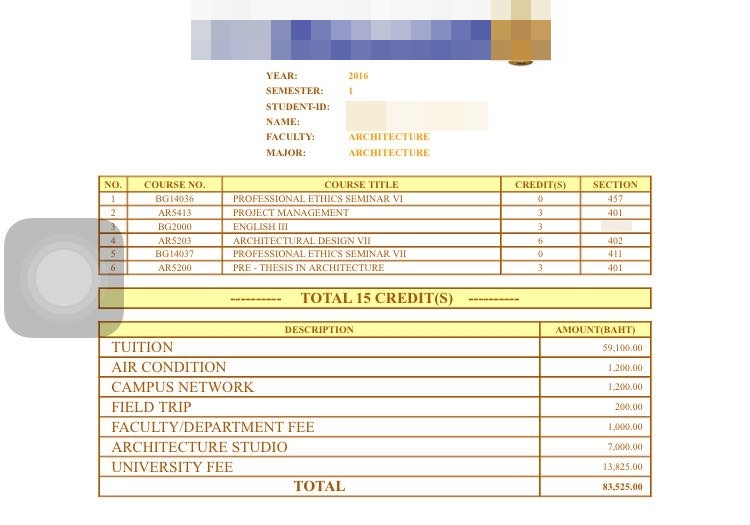 ออกตัวแจ้งตรงนี้ก่อนนะคะ ว่าหนูเรียนคณะสถาปัตย์ค่ะ คณะอื่นไม่ทราบว่าเป็นยังไง แต่คณะเราปกติค่าเทอมจะแพงกว่าคณะบริหาร หรือArts อยู่แล้ว