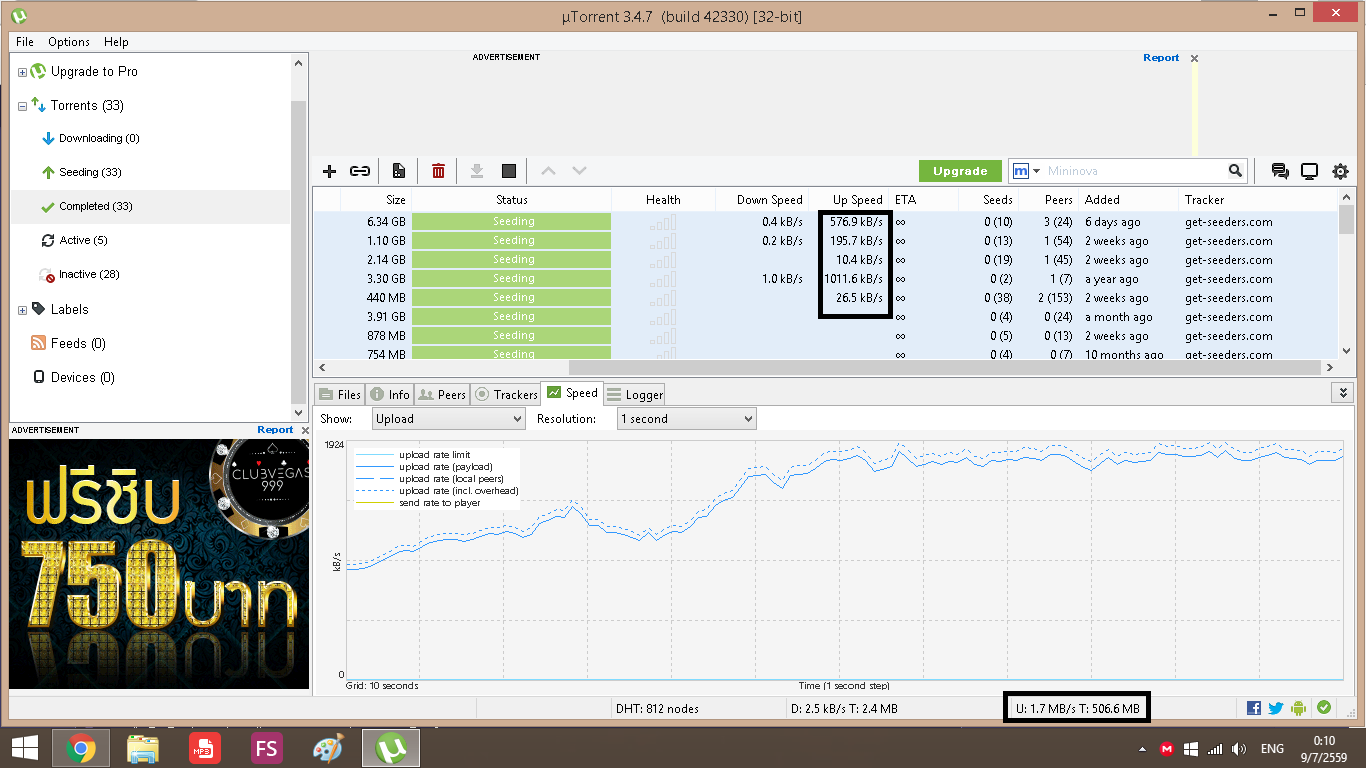 สุดยอดมากครับเน็ต TOT 100 Mbps โหลดบิตได้เต็มๆไม่มีกั๊ก
