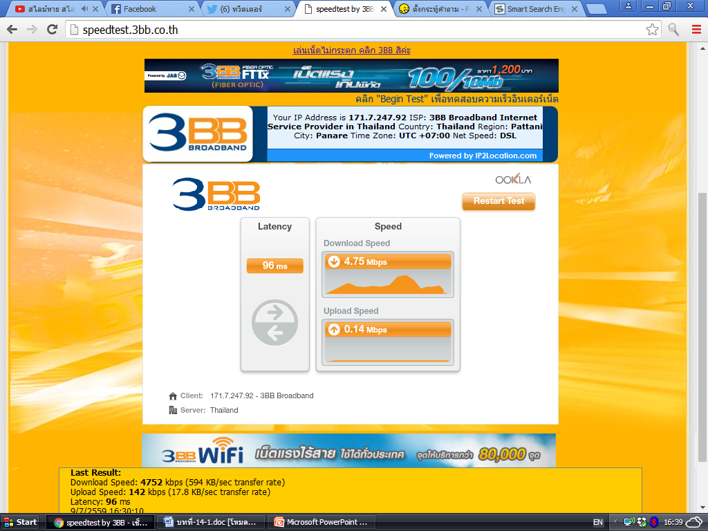 ตังแต่เดือน กรกฏาความเร็วได้ตกลงไปเยอะมากๆๆๆๆ จากที่เคยดูยูทูปได้แบบ 1080p แต่ตอนนี้ขนาดดู144p ยังสะดุด OMG!!!!!!!