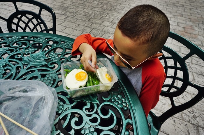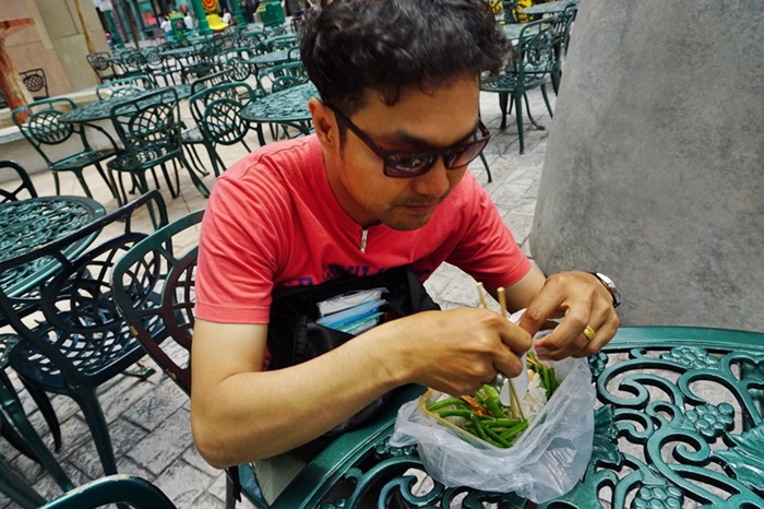 แวะเติมพลังตรงนี้แหล่ะ ห่อข้าวกล่องมาแล้วนี่ รออารายย แต่ไม่มีร่มเลยแห่ะ เอานะรีบกินรีบอิ่มล่ะกัน