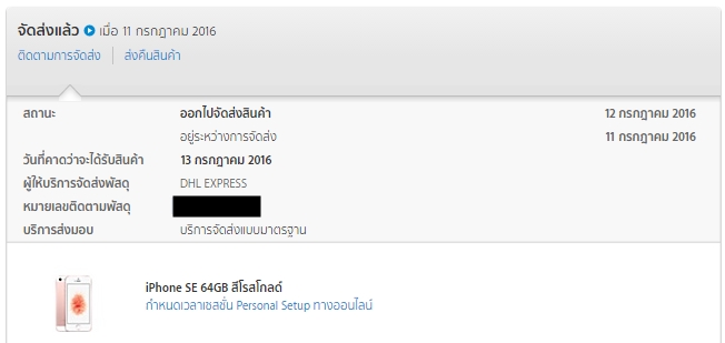 ผมสั่งสี Rose Gold 64GB ไป เมื่อวันพุธที่ 1 ระบบขึ้นว่าจะได้รับประมาณวันที่ 20-24 มิถุนายน พอวันที่ 2 มิ.ย. ระบบเปลี่ยนเป็นเตรียมจัดส่ง และจัดส่งสินค้าภายในวันเดียว และระบุว่าจะได้รับวันที่ 6 มิ.ย.