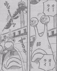 - แครอทบอกว่าอัศวินกระต่ายค่อนข้างแข็งแกร่งเลยทีเดียว และเจ้านั่นก็ไม่ใช่เผ่ามิงค์ด้วย มันมีชื่อว่าแรนดอล์ฟ - แรนดอล์ฟขว้างหอกใส่นามิ แต่หอกกลับเสียบเข้าไปในตัวของยักษ์จากตอนที่แล้ว - นามิบอกลูฟี่ ช