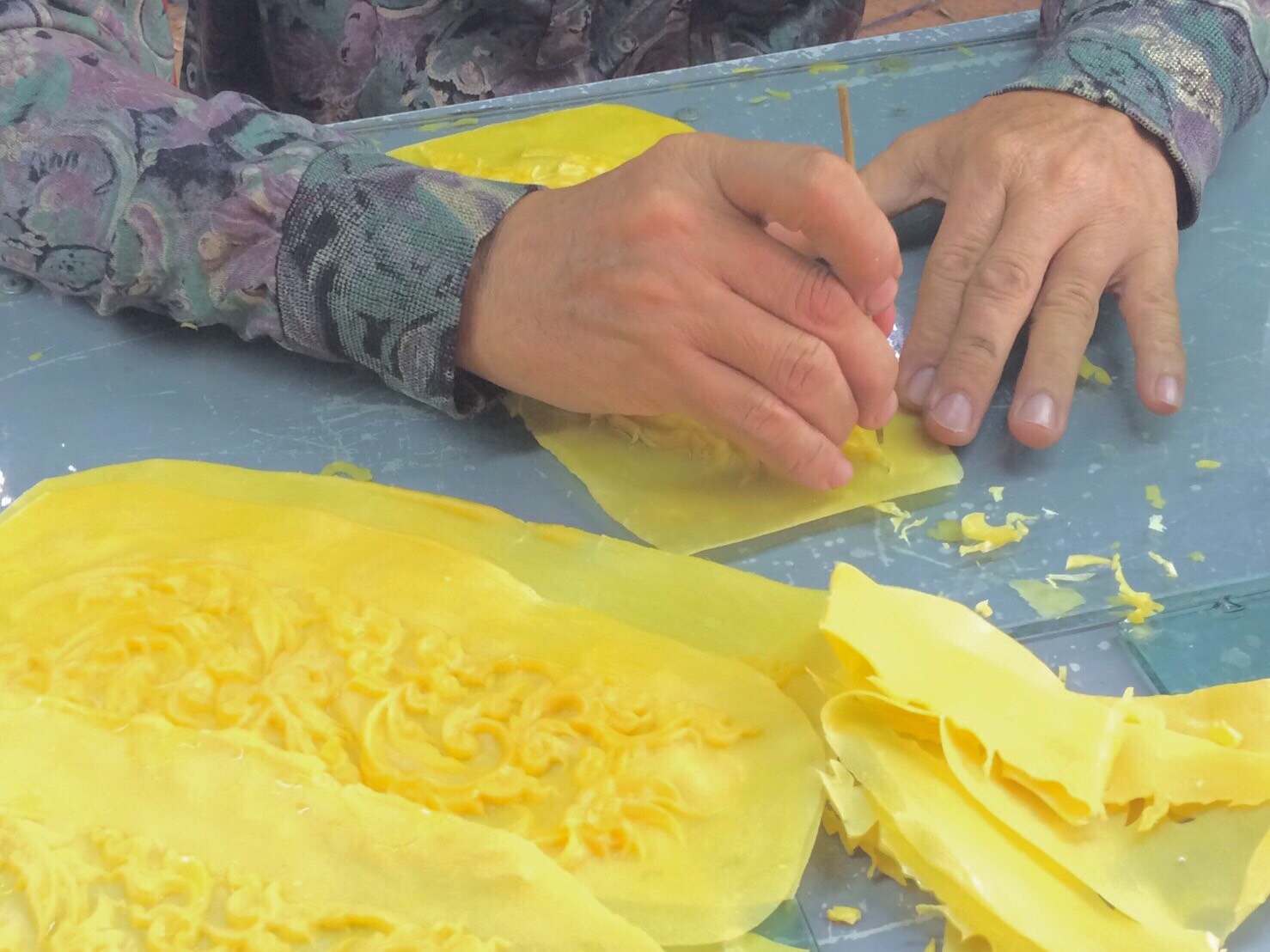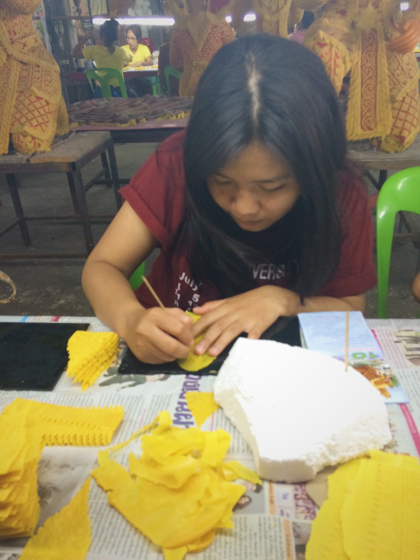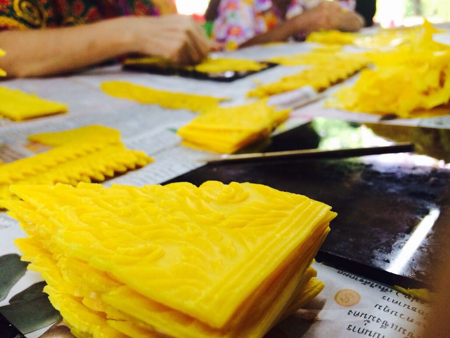 มาต่อกันที่วัดบูรพา วัดบูรพาจะทำเทียนประเภทติดพิมพ์ มีกิจกรรมให้ผู้ไปดูงานสามารถทำร่วมได้ด้วย นั่นก็คือ การแกะพิมพ์ค่ะ มีแมลงวันอยากร่วมเฟรมด้วยอ่ะ