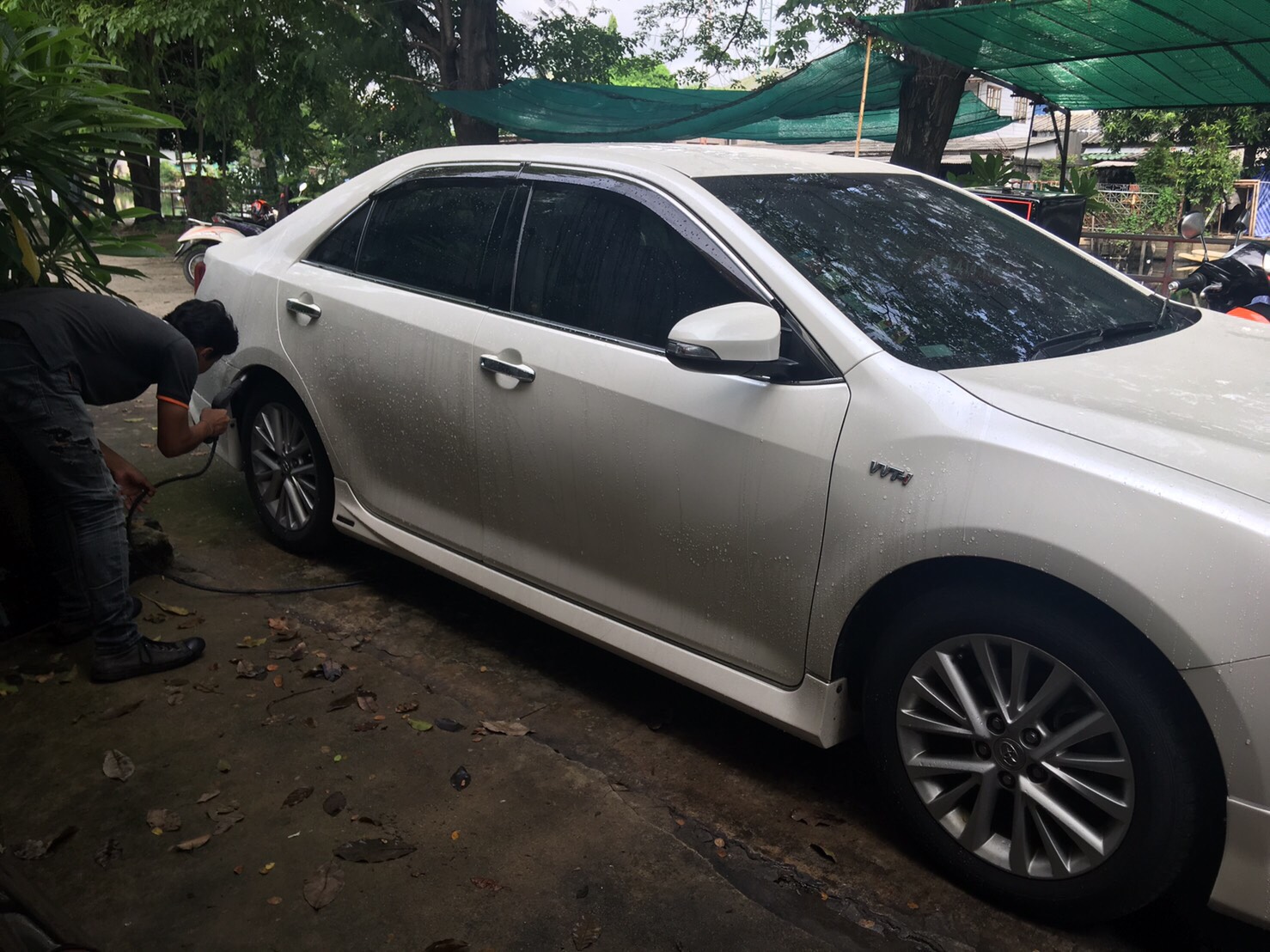 เขาก็เริ่มล้าง ก็ล้างปกติ แต่แบบ สะอาดมาก ละเมียดละไมมาก เรียกได้ว่านาน เราว่า เขาทำดีนะ คือแบบเวลาไปล้างที่ปั๊มเขาล้างเร็วเช็ดเร็วมาก ไม่ค่อยสะอาดเลย เหมือนแบบเขามีหลายคันต้องทำ เขาเลยรีบ แต่นี้มาล้างที่บ้านมันมีเราคันเดียว เขาเลยค่อยๆไม่รีบ แล้วก็ดูดฝุ่น ล้างพวกพรมแผ่นรองเท้า ถือว่าสะอาดเลยค่ะ