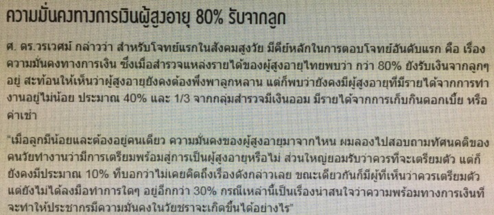 "ความมั่นคงทางการเงินผู้สูงอายุไทย 80% รับจากลูก" คุณคิดว่าเป็นเพราะเหตุใดครับ ?