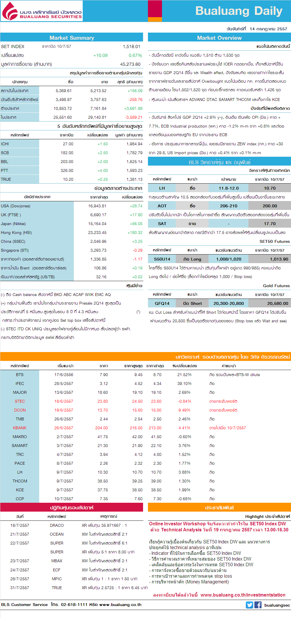 FORTH : บริษัท ฟอร์ท คอร์ปอเรชั่น จำกัด (มหาชน) 16 ก.ย. 2557 XB วันปิดสมุดทะเบียน 19 ก.ย. 2557 ราคาจองซื้อ - อัตราส่วนการจองซื้อ 10 : 1 ประเภทการให้สิทธิประโยชน์ สิทธิในการจองซื้อหลักทรัพย์ของบริษั