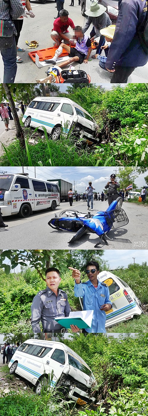 รถตู้โดยสาร หลบรถบรรทุกเลี้ยวยูเทิร์น ก่อนเสียหลักชน รถจยย.นักเรียน ตาย 1 เจ็บ 2 @ ถนนปทุมธานี-ลาดหลุมแก้ว