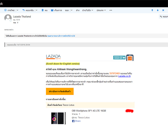 Lazada เอาอีกแล้วครับ สั่งมือถือแต่เอากล้องกันน้ำมาส่ง