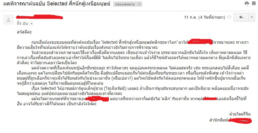 ผลการพิจารณาของสำนักพิมพ์...