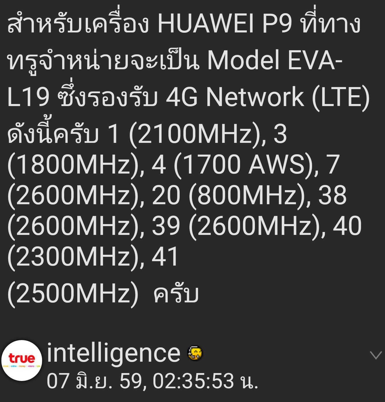 เราเพิ่งไปถาม shop ais มา พนักงานบอกว่ารุ่น p9 รองรับ 4g 900 Mhz ? (ในโบชัวของhuawei p9 ก็บอกว่ารองรับ) งงเลย จริงป่าว ยังไง