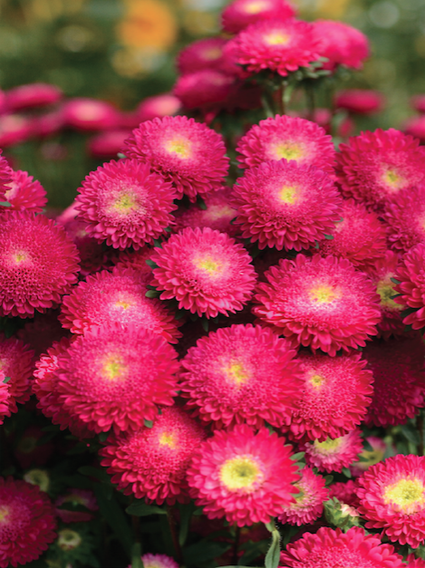 แอสเตอร์พันธุ์ตัดดอก ปรับปรุงให้กลีบดอกบานเต็มทั้งดอก เมื่อบานเต็มที่จะไม่มีใจกลางดอก ทำให้ได้ดอกที่ดูใหญ่สีสดกว่าเดิม ก้านดอกยาว แข็งแรง