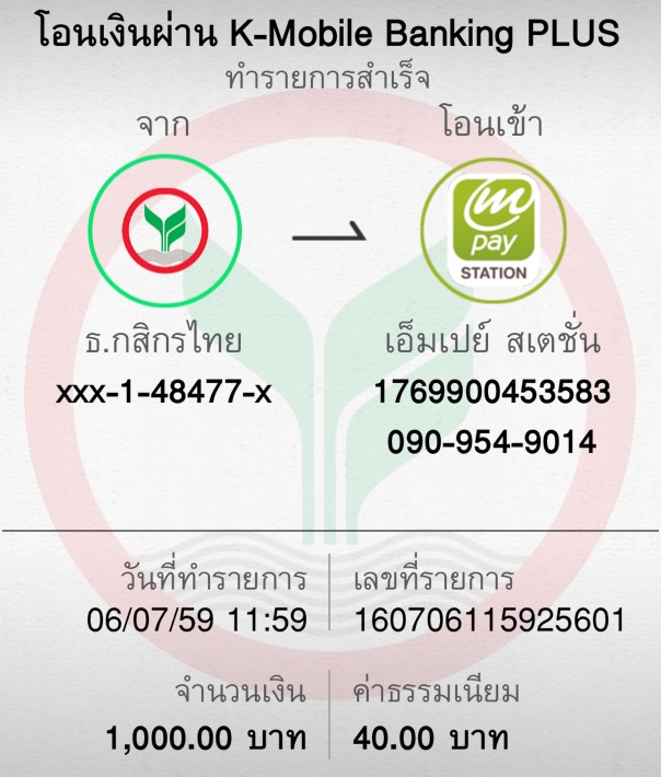 สอบถามเรื่อง M PAY STATION ของ K banking mobile