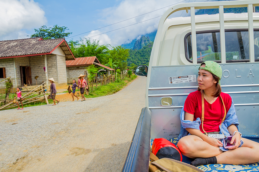 ในขณะที่เรากำลังนั่งรถไปยังวังเวียง หลังจากออกจากเวียงจันทร์รถจะจอดพักที่ร้านอาหารแหล่งหนึ่งให้เราได้พัก