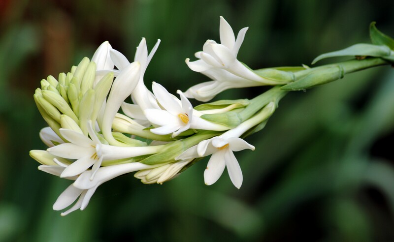 สาวไทยไม่คุ้นตากับดอกไม้ชนิดนี้ มือเรียวเอื้อมออกไปเพื่อจะคว้าแจกันแก้วทรงแคบสูงบอบบางที่มีดอกไม้ขาวช่อยาวถูกปักไว้ ตั้งใจจะเอามาดูใกล้ๆ แต่แขนเธอสั้นไปหน่อย เอื้อมไม่ถึง จึงตั้งท่าจะขยับลุก ทว่าคนตัวโตที่สุดในโต๊ะนั้นคงจะรำคาญตาจึงช่วยหยิบส่งมาให้ สาวไทยอุบอิบขอบคุณเบาๆ