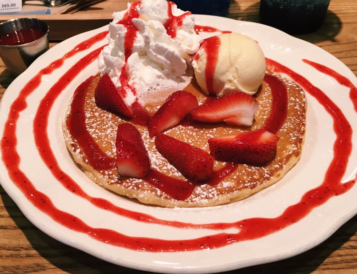 เมนูสำหรับคนรักแป้งค่ะ แพนเค้กหน้านุ่มราดสตรอเบอรี่หวานหอม