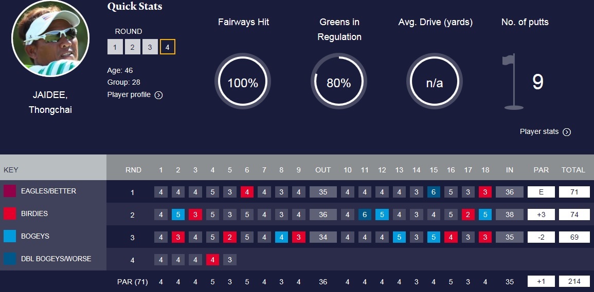 วันนี้เป็นวันสุดท้าย พวกเราช่วยเชียร์โปรช้าง ธงชัย ใจดี ให้เข้าสู่ชัยชนะเป็นแชมป์กันต้อนรับปีใหม่กัน เมื่อวานทำผลได้ดี อยู่ที่ -6 เสียดายได้โบกี้หลุมสุดท้าย ไม่งั้นก็อยู่ -7 แล้ว กอล์ฟรายการ UBS Hon