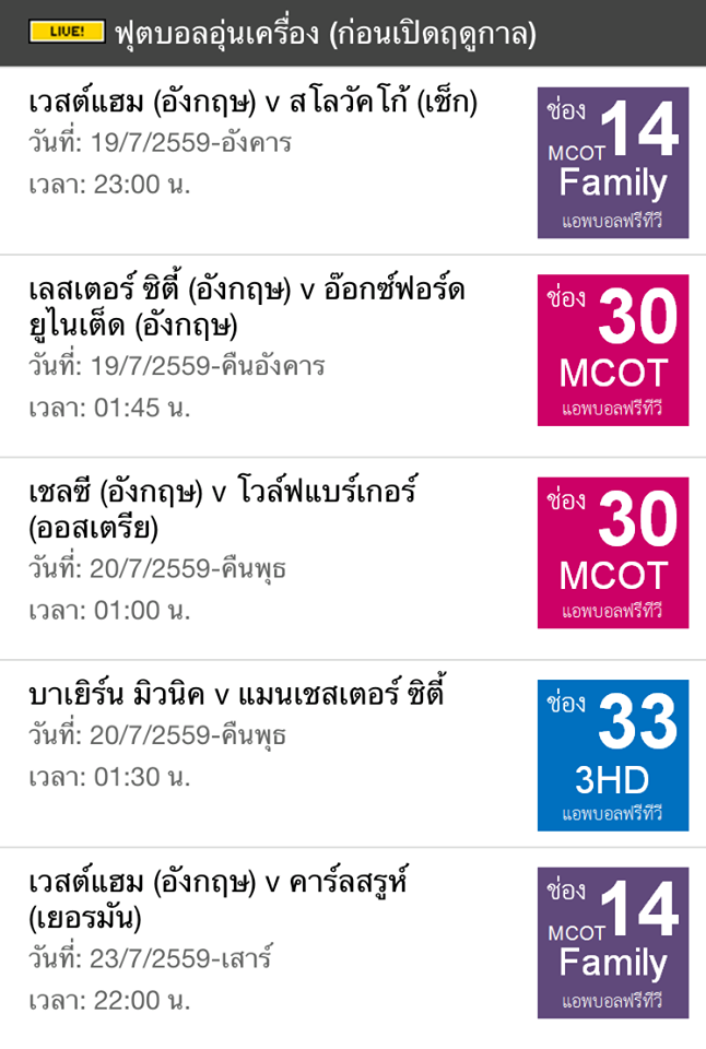 ยูธลีกมีการถ่ายทอดสดไหมครับ ถ่ายช่องไหน เริ่มเตะกี่โมง