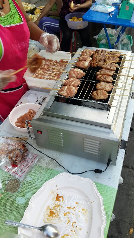 เลิกงานมาเช้านี้แวะตลาดแถวซอยบ้านหาซื้ออะไรทาน ข้าว ขนมของหวาน รวมถึงหมูปิ้ง ไม้ละ10บาท สั่งมา5ไม้