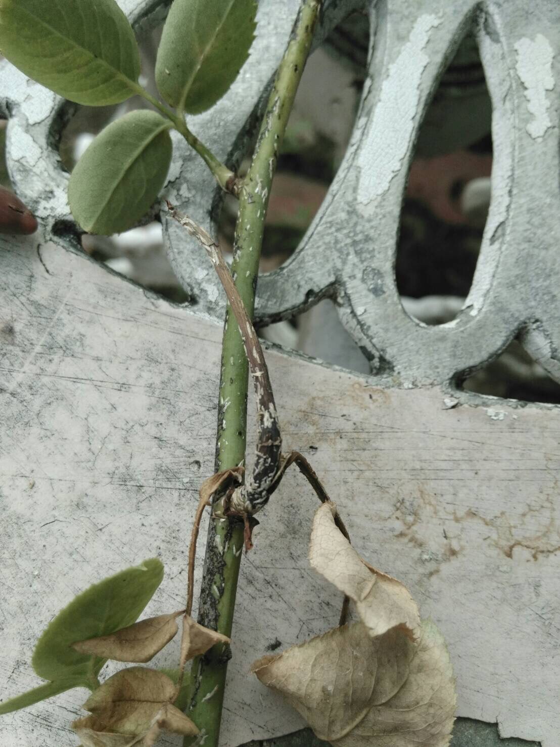 ซื้อมาก็หนอนกินดอกแล้วอะค่ะ เลยตัดดอกทิ้ง ริดกิ่งแทบโกร๋น เหลือกิ่งที่ยังงามๆ ไว้ มีหนอนตัวนึงยังมีชีวิตอยู่ มันกินดอกตูมอะค่ะ ไม่ได้ฆ่าหรอกนะคะ เอาลงดินในกระถางกุหลาบแล้วก็เอาดินกลบ ไม่น่าจะตายนะคะ