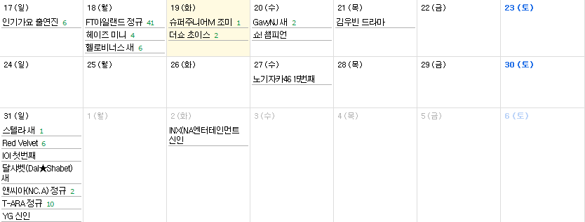 2.ตารางการปล่อยเพลงของศิลปินเดือนนี้
