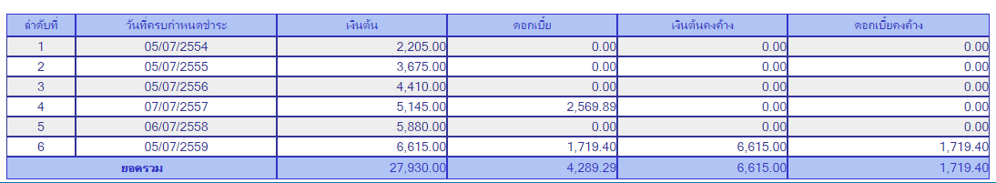 ตารางข้างล่างนี้เอามาให้ดูว่าที่ผ่านมาผมก็ได้ชำระเงินเหมือนกัน แต่งวดล่าสุดนี้ผมยังไม่ได้ชำระครับ