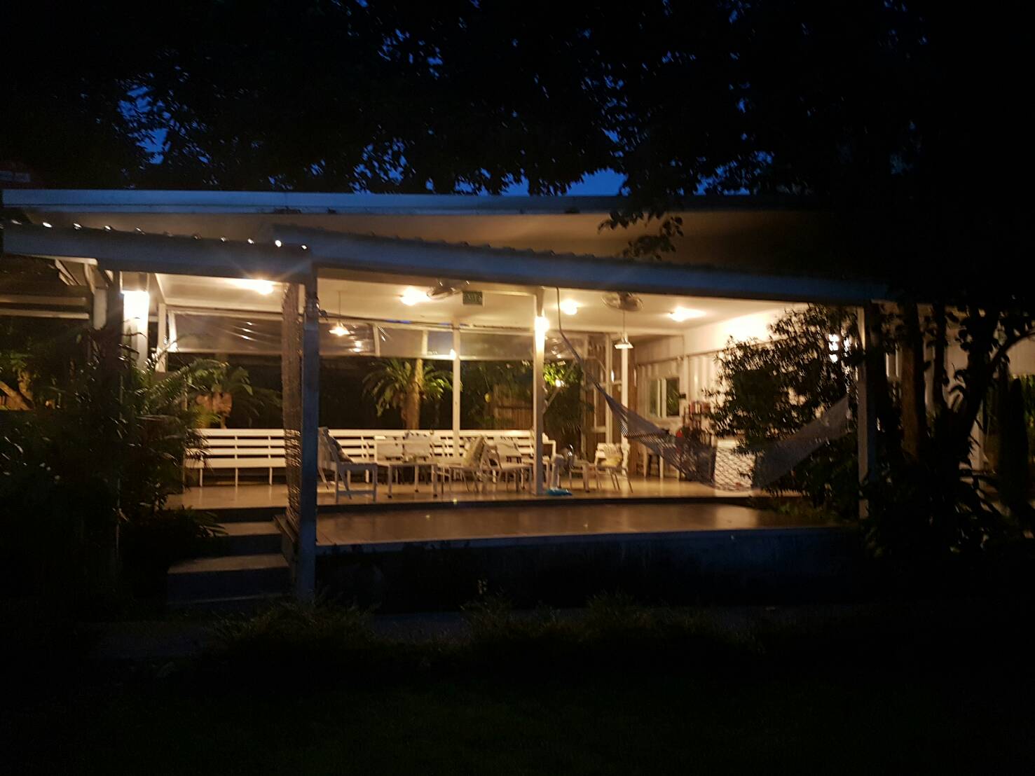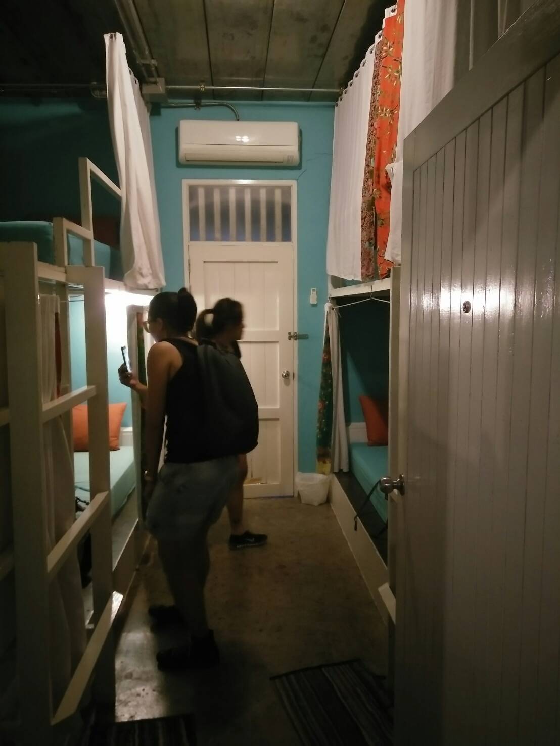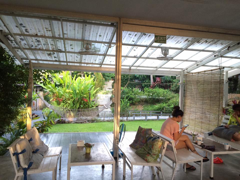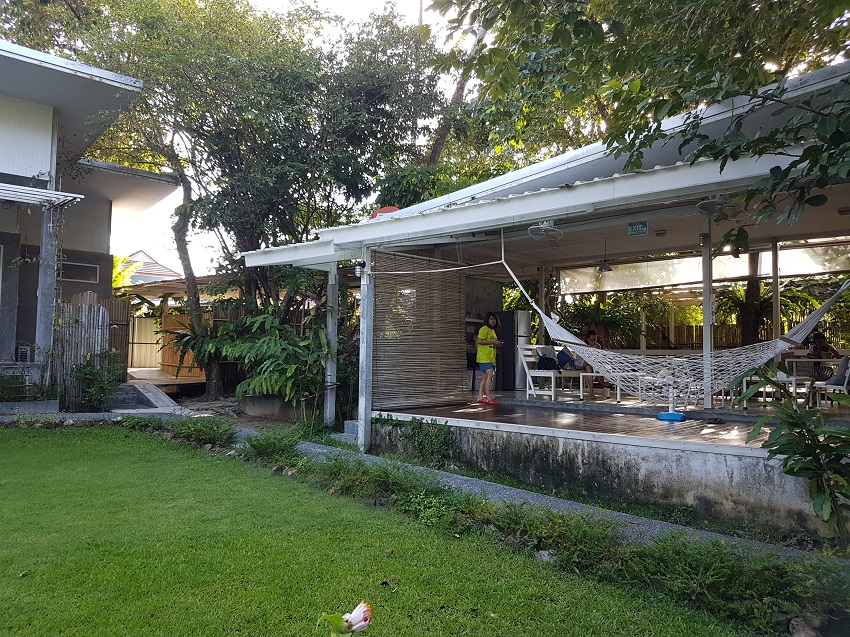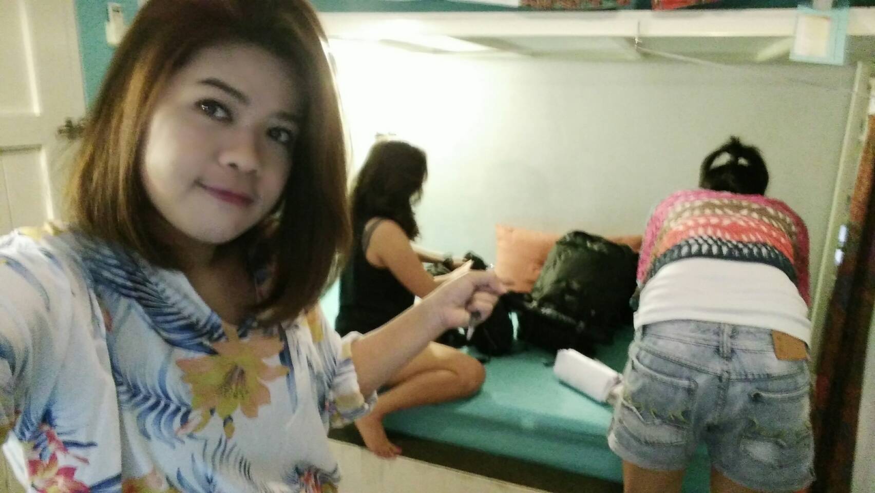 ถึงแล้วจ้า ห้องนอนของเรา เป็นห้องที่มีทั้งหมดสี่เตียง เป็นเตียงสองชั้นนะคะ ด้านหลังเป็นสวนเล็กๆ สามารถออกไปตากผ้าได้เลย