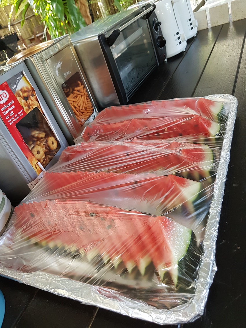 ตอนเช้าๆ จะมีขนมปัง ผลไม้ให้ได้ทานกันฟรีค่ะ ไม่คิดเงินเพิ่ม