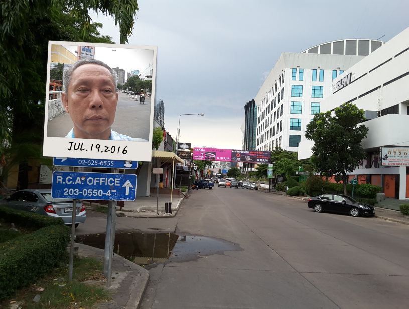 เดินออกมาดูบรรยากาศนอกห้างพาต้า ตรงฟุตบาทปากทางรถเข้าห้าง