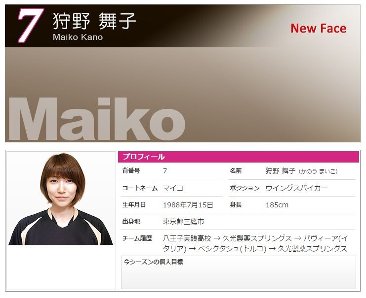 หลังจากที่ไมโกะพักไปหนึ่งปีเต็ม กลับมาครั้งนี้กับการร่วมทีมใหม่อย่าง ทีม PFU BlueCats (ซึ่งมี"เอบาตะ"อยู่ในทีม) ครั้งนี้ "ไมโกะ"ในนาม No.7 และกลับมาเล่นในตำแหน่งเดิมอีกครั้ง WS (ตำแหน่งตัวตบหัวเสา) // หลังจากที่รับหน้าที่ตำแหน่ง Setter ให้กับทีม Hisamitsu Springs ในปีก่อนๆที่ผ่านมา........(ถ้าเป็นไปได้อยากเห็นไมโกะกลับมาติดทีมชาติอีกครั้งน่ะ😄)