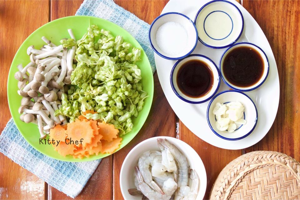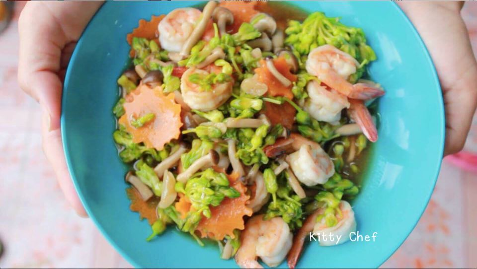 ดอกขจรกุ้งผัดน้ำมันหอย by Kitty Chef