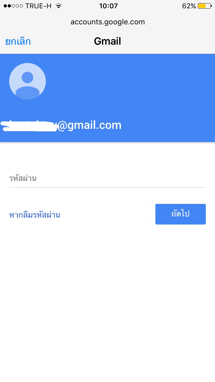 ลืมรหัสเฟส รหัสอีเมลล์ที่สมัคร