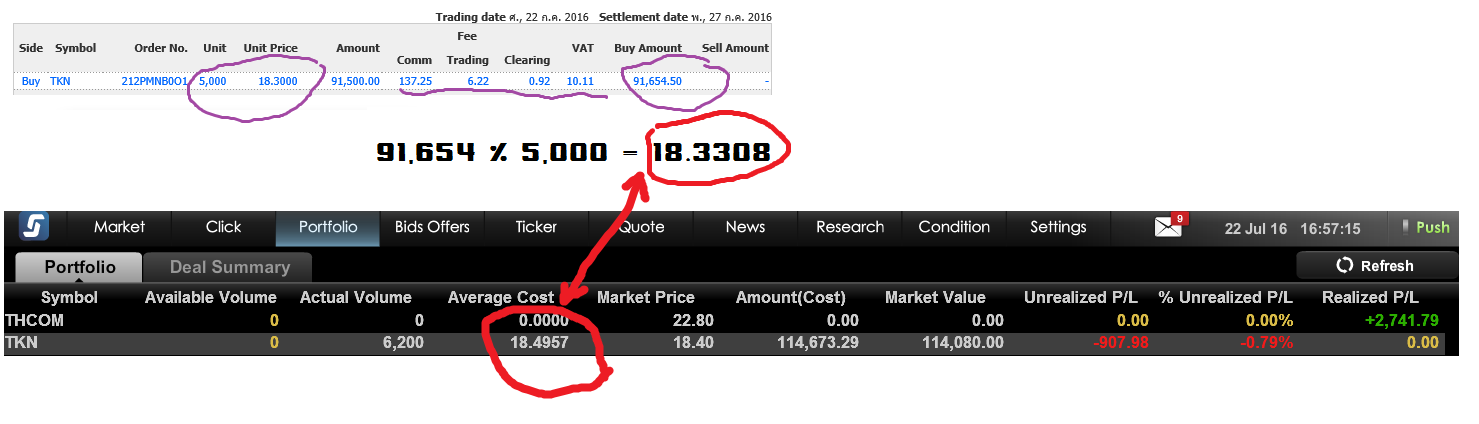 Realized และ Unrealized ตามหลักความเป็นจริงคือ "ส่วนต่างระหว่างต้นทุน และ ราคาหุ้นในขณะนั้น" ฉะนั้นจะถูกต้องหรือไม่ขึ้นอยู่ เช่น a. ซื้อหุ้น PTT ที่ 30.25 บาท ผ่านเน็ต b. บนสมมติฐานค่