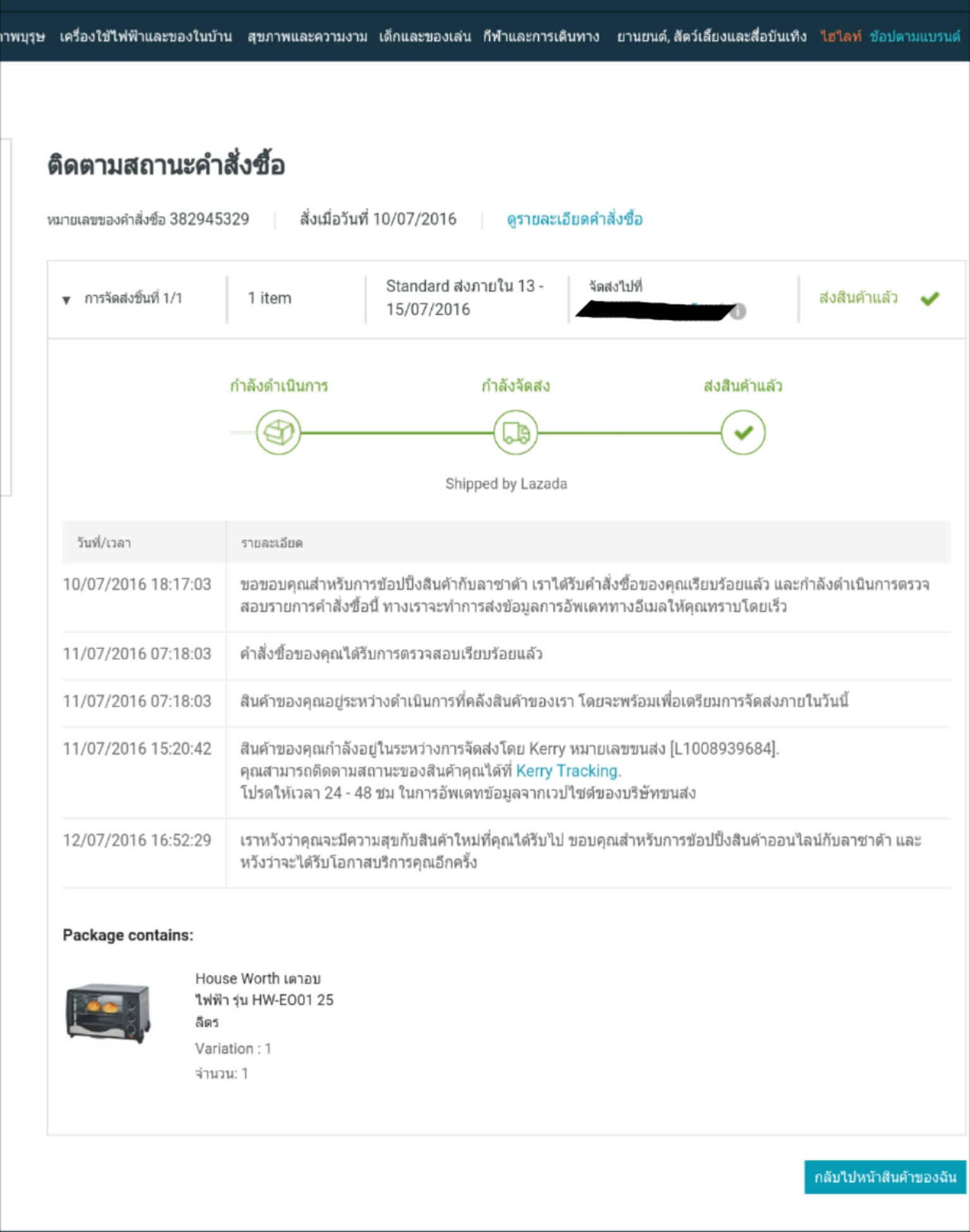 เราได้ทำการสั่งซื้อเตาอบHW25ลิตรมาเมื่อวันที่10/7/59 จ่ายตังที่7-11 แล้วก็รอสินค้ามาส่งตามปกติ