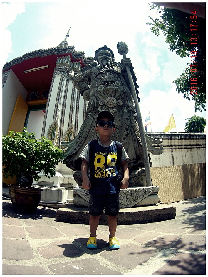 ถ่ายคู่กับยักษ์วัดโพธิ ซักใบครับ ป๊าบอกมีตำนาน เกี่ยวกับยักษ์วัดแจ้ง(หรือวัดอรุณนั่นเอง)และวัดพโพธิ์สู้กัน ส่วนฤทธิ์จากการสู้รบของยักษ์ทั้งคู่ที่ทำชุมชนละแวกนี้ราบเรียบเป็นหน้ากลอง ทำให้ชาวบ้านพากันเรียกว่า “ท่าเตียน” เรื่อยมาจนถึงทุกวันนี้ ป๊าเล่าคร่าวๆแค่นี้ ส่วนใครอยากรู้รายละเอียดตามลิ้งค์ไปเลยครับ