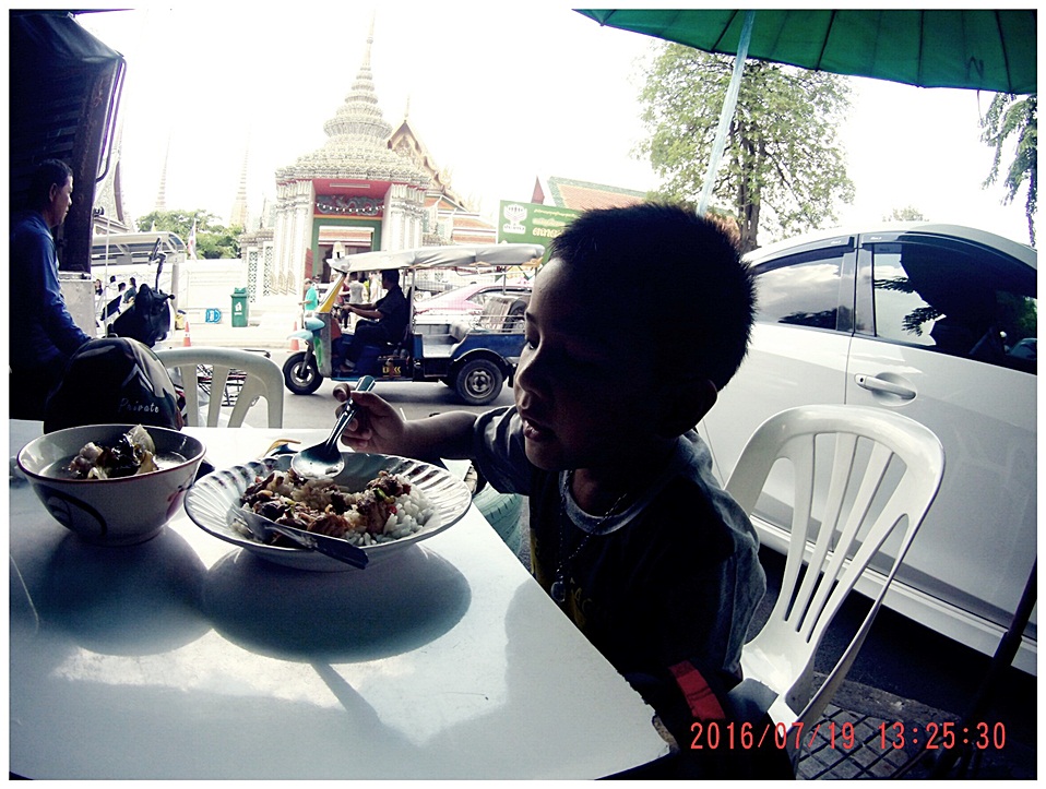 ออกมาจากวัดเราก็ข้ามมาอีกฝาก หาข้าวกลางวันกินก่อน เดินมาเจอร้านข้าวแกง น่ากิน เลยจัดมาซะหนึ่งชุดพอ เกิ้ลกินไม่เยอะ ที่เหลือ ให้ป๊ารับผิดชอบไป 5555 ปล: ป๊าบอกว่าร้านนี้เป็นร้านประจำที่ป๊าชอบมากินตอนมารับแม่สมัยที่แม่เรียนอยู่ที่ พ.ต.พ. (วิทยาลัยเทคโนโลยีตั้งตรงจิตรพณิชยการ)