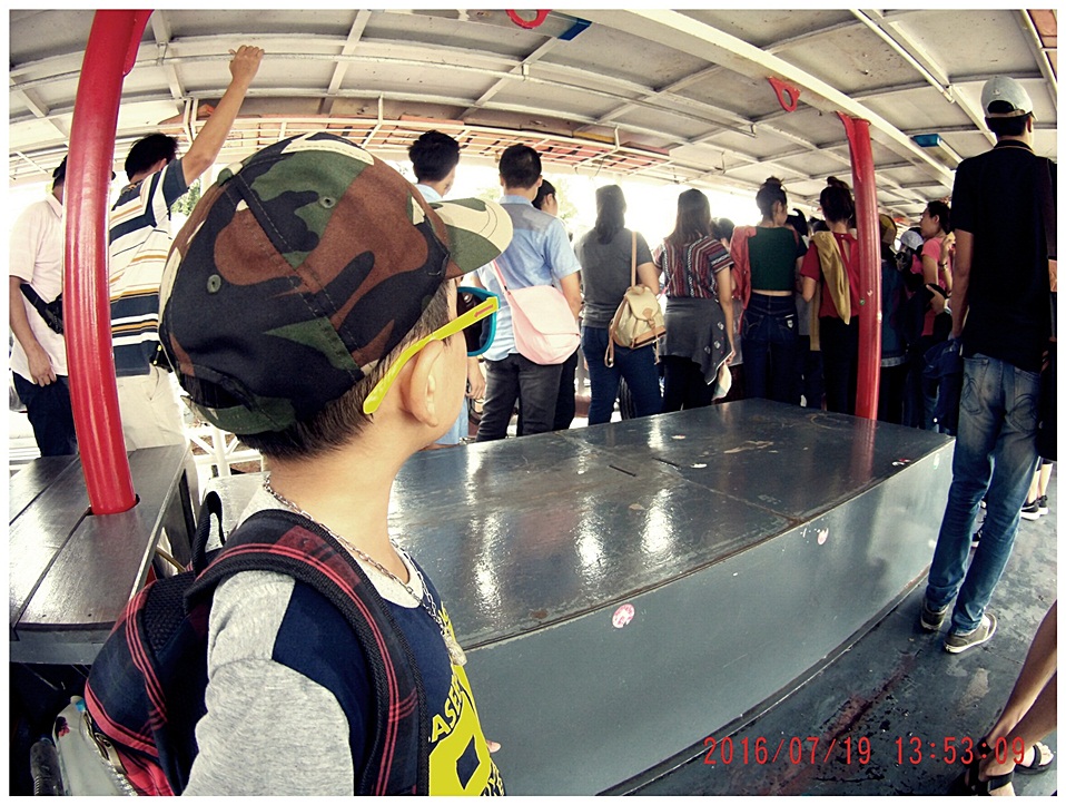 จ่ายค่าโดยสารแล้วก็เดินลงมาที่โป๊ะได้เลยครับ เพื่อขึ้นเรือข้ามฟาก.. แต่กว่าจะได้มาถึงณจุดนี้ได้ บอกเลยครับว่า เหนื่อย! เพราะคนเยอะมากกกกก ต้องต่อคิวกันมาตั้งแต่ปากทางเข้านู้นนเลยนะครับ