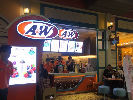 กระทู้นี้ไม่มีอะไรมากค่ะ แค่อยากจะบอกว่า แม่เราชอบกินวาฟเฟิล แล้วแม่ก็บอกว่าของ A&W อร่อย ซึ่งแม่ชอบไปกินกับน้า หรือเวลาเดินทางไปต่างจังหวัดแล้วแวะปั๊มที่มีร้านนี้อยู่ ส่วนตัวเราแล้วไม่เคยเข้าร้านนี้เลยค่ะ ประจวบเหมาะกับไปเดิน Terminal กับแม่แล้วเดินผ่านร้านนี้พอดี แม่หันมาบอกว่าร้านนี้วาฟเฟิลอร่อย นั่นไง !!!! คือแม่จะสื่อว่า ??? เลยตามใจนางหน่อย คือก็ถามแม่ร้านเล็กนิดเดียว แม่จะนั่งกินตรงไหนเนี่ย มีโต๊ะอยู่ 2 ตัวแล้วก็มีคนนั่งอยู่ดูไม่มีวี่แววจะลุกด้วย เราเลยพาแม่เดินวนไปรอบนึง ผ่านกลับมาอีกรอบ โต๊ะว่างแล้วตัวนึง รีบเดินเข้าไปเลยค่ะ สั่งเมนูวาฟเฟิลราดช็อกโกแลตกับรูทเบีย 1 แก้วค่ะ (มีเป็นชุดพอดี) นั่งรอสักพักหนึ่งก็ได้วาฟเฟิลร้อนๆมาทาน