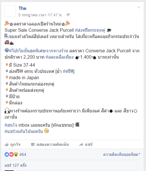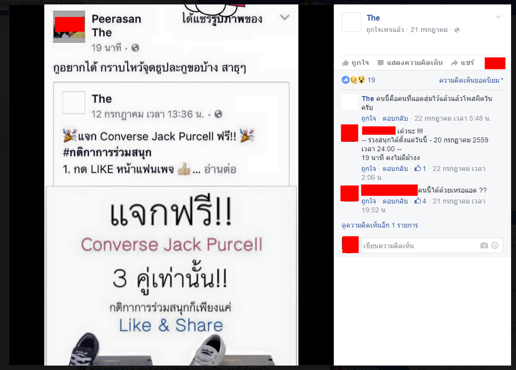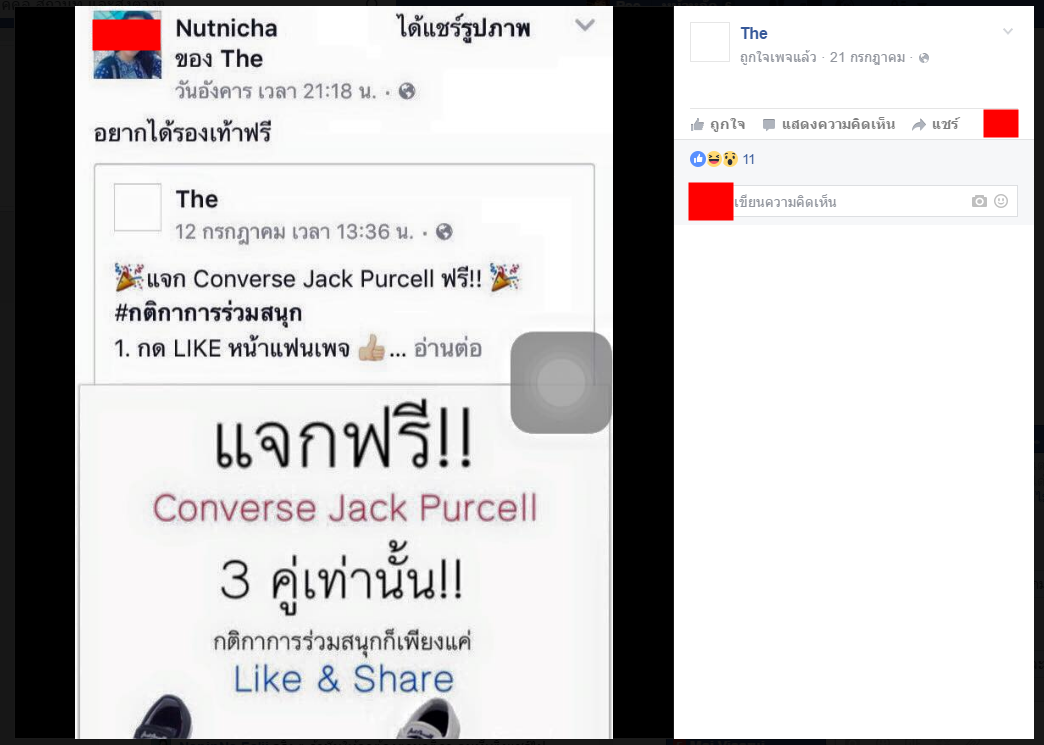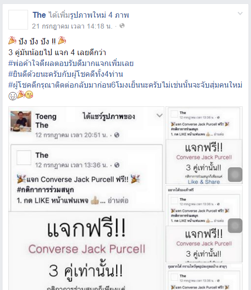 เกี่ยวกับกิจกรรมการแจกรองเท้า Converse Jack Purcell โดยมีเงื่อนไขให้แชร์โพสต์
