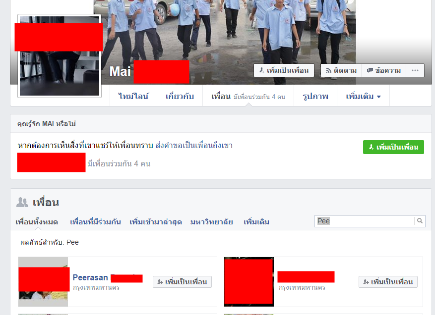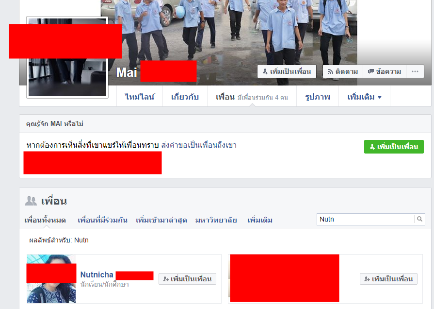 ค้นหาในรายชื่อเพื่อน สรุป เจอ 2 คน มีเพื่อนร่วมกันในเฟส